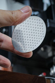 سطح این دوش شامل دهها حفره بسیار کوچک و دقیق است که با نظم هندسی و استاندارد تولید شدهاند. این طراحی باعث میشود که آب هنگام خروج از گروپهد با فشار یکسان از تمام نقاط دوش عبور کرده و سطح قهوه در پرتافیلتر را بهطور کامل پوشش دهد.